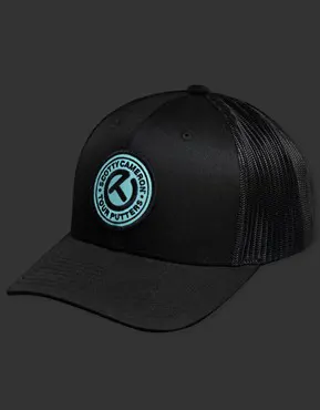 Our new retro trucker mesh snapback hat in black is an instant classic in a one-size-fits-most format that features a Scotty Blue Circle T patch front...