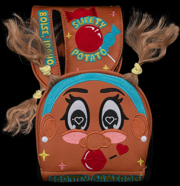 At first blush, our mid-round Sweety Potato headcover is as cute as a kid in a candy store looking for a lollipop. With pulled back pigtails, a colorful headband, earrings and more, she's quick to blow a kiss to the gallery, as she's got hearts in her eyes for the golf in Boise. Released to Club Cameron members on August 12, 2025.