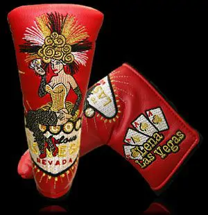 2009 Lena Las Vegas Whats in the cards for you in Vegas? Lady Luck would say that youre sitting on four aces, the dice are hot, and youve got a show to get to. Scotty went all in with this years Lena Las Vegas headcover, made in a limited quantity of just 1,000 lipstick red, sparkly gold thread, glitzy pieces. The Tour pros received their FTUO covers in their lockers at the event, but Club Cameron members were able to secure theirs here only on ScottyCameron.com when Scotty released them on October 15, 2009.