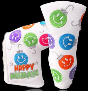 2011 Happy Holidays Smiley Faces Smile, the holidays are here! Scotty has been busy in his workshop getting ready to spread seasons greetings and cheer. With colorful dancing Smiley Face ornaments on a brilliant snow white backdrop, this years holiday headcover is sure to get you in the spirit. Scotty released 1,911 like this. 100 with a Cherry Harry ornament were sprinkled in at random on Dec. 14, 2011.