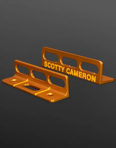 These portable putting path tools are the perfect guides to use during drills. The concept is simple: Keep the putter face square to the target line at address and impact as you practice stroking putts between the guides. Each precision milled aluminum bright dip orange piece is engraved with Scotty's For Tour Use Only, Titleist and Circle T emblems accented in school bus yellow. The Putter Studio may, at its own discretion and without giving reason, limit quantities purchased per person, per household or per order. All putters, handcrafted and limited release items are final sale and not returnable. Click here for full terms of sale. Originally sold for $55.00