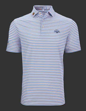 Enjoy Scotty’s latest performance polo crafted from a 92% polyester / 8% spandex Fairmont performance jersey fabric that’s easy to take care of, guards against the sun and feels great. With colorful stripes, as well as our expertly embroidered 7 Point Crown, Circle T and Super Fast Font sleeve treatment, enjoy Summer Comfort fabrication with this classic fit polo shirt. Original Price: $110.00