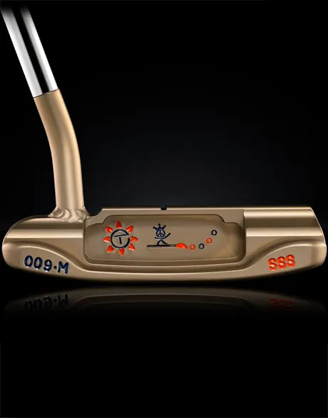 Head for the sunset like Scotty’s Peace Surfer hand-stamped in the back cavity of this 34-inch 009M (Masterful) 1.5 SSS in our golden Chromatic Bronze finish. With its welded round neck and milled sight line positioned on the topline, this one’s a guaranteed good time. To find similar items, please visit the Scotty Cameron Golf Gallery in Encinitas, CA. Original Price: $4,000.00