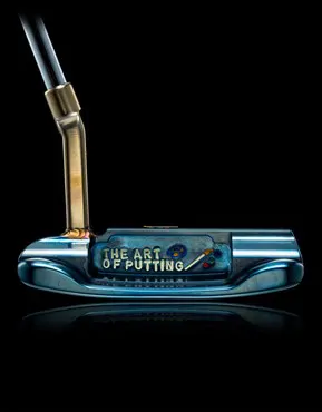 Nothing displays the Art of Putting more than a hand-stamped paint brush for a sight dot. This 34-inch 009M (Masterful) Carbon Chromatic Blue steel gamer with Scotty's hand-applied finishes includes a welded SSS plumbing neck in Chromatic Bronze. The perforated blue leather grip and Circle T Headcover complete the presentation perfectly. Original Price: $6,000.00