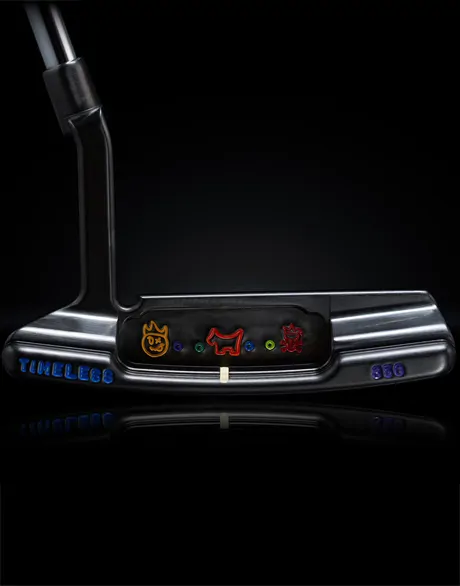This rare 34-inch Newport 2 Timeless crafted from raw carbon steel and given Scotty's brushed black finish is a For Tour Use Only gamer hand-stamped with some back cavity fun featuring Hot Head Harry, our Scotty Dog and Jester characters all wrapped up with a new blue and lime Circle T headcover. All putters and handcrafted items are final sale and not returnable. Click here for full terms of sale. Original Price: $4,000.00