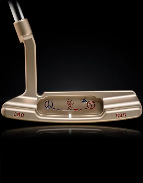 For those who enjoy good vibes and a few waves before 18 holes, Scotty gives you this 34-inch Newport 2 Timeless SSS Peace Surf Golf Tour beauty with his elegant hand-applied Chromatic Bronze finish and fun, hand-stamped Peace Surf Golf scene complete with custom tungsten sole weights. To find similar items, please visit the Scotty Cameron Golf Gallery in Encinitas, CA. Original Price: $4,000.00