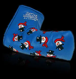 Dancing Snowmen Ho, Ho, Ho, Merry Christmas and Happy Holidays from the Scotty Cameron Putter Studio! Scotty wanted to do something in celebration of the 2003 holiday season and what better than a dancing snowman headcover! This blue cover features Frosty sporting a scarf and black top hat, with a mischievous little grin.