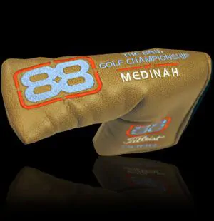 2006 88th Golf Championship Tan pebble grain ultra-leather is complemented perfectly by the Putter Studios metallic light blue, orange and white logo accents on this new headcover. Scotty designed this one to commemorate the 88th Golf Championship at Medinah, which is the fourth and final major of the 2006 season.