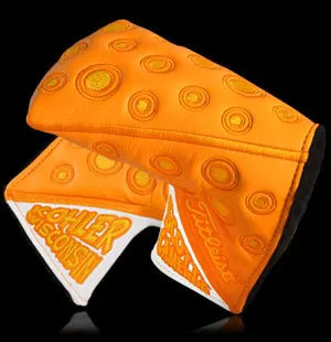 2015 The Big Cheese When we think Wisconsin, we think cheese. The state's faithful football fans wear foam blocks of cheese on their heads when cheering on the home team. To up the ante, and to celebrate the final major of the season, Scotty churned out on August 11, 2015 The Big Cheese. A one-size-fits-nearly-all-putter-heads brilliantly crafted wedge of headcover cheese. Extra sharp.