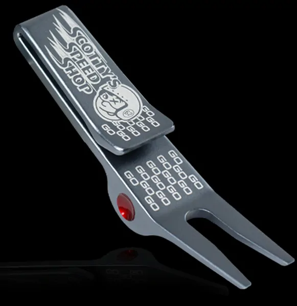 Go! Go! Go! With Scotty’s latest clip pivot tool featuring our Speed Shop mascot Johnny Racer, green repairs can be made faster than ever. Still the best way to keep the greens clean, this one has a misted feel with an anodized bright dip gray finish and was released in the Speed Shop on February 25, 2021.